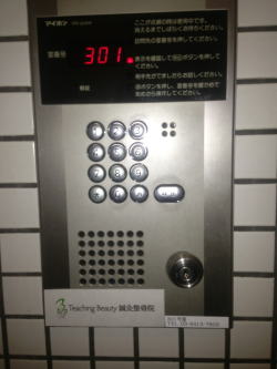 3階に着きましたら、部屋番号の「301」を押していただき、中に入ってきて下さい。