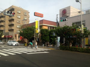 次の横断歩道付近の右手に 「ロイヤルホスト」が見えます。 ※渡らなくて大丈夫です。 |