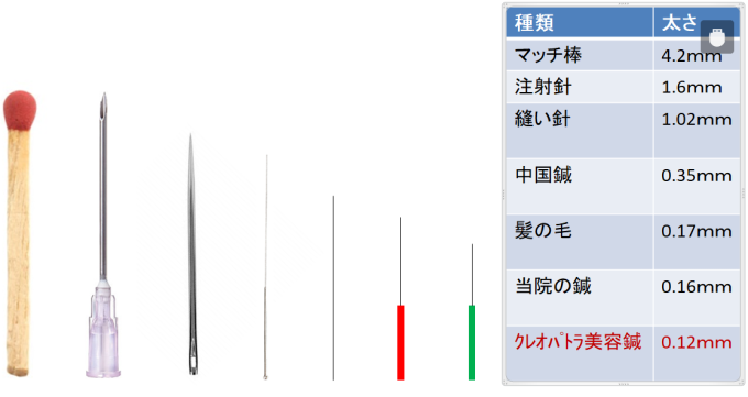 鍼を刺した状態で置く時間も短いですし、皮膚と接する面積も少ないからです。