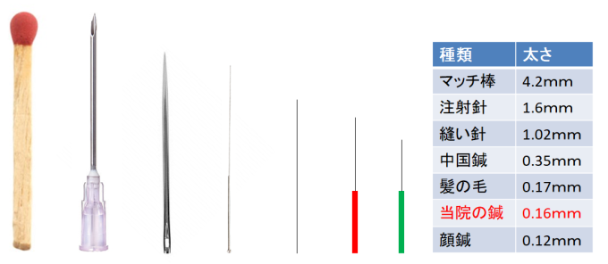 では、太い鍼の方が効果が高いのか?と言われると、そんなこともありません。